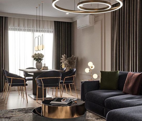 Современные тенденции в дизайне гостиной также отражаются в стремлении к минимализму и функциональности. Чистые линии, отсутствие лишних деталей, максимальная функциональность мебели и аксессуаров — все это характеризует современный стиль. Минимализм позволяет создать просторное и уютное пространство, где каждая деталь имеет свою функцию и не перегружает общий облик помещения.